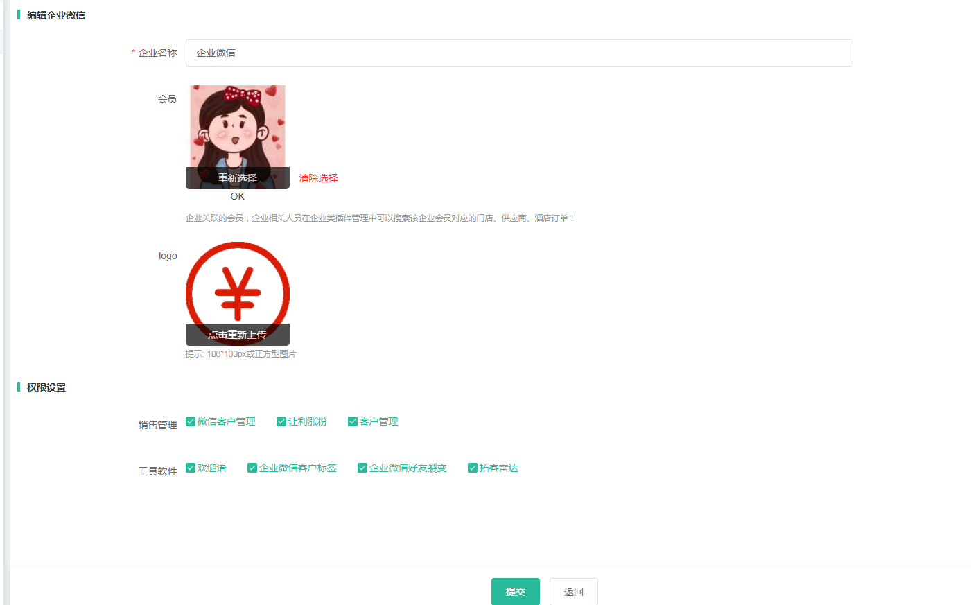 添加企业微信管理员信息-
