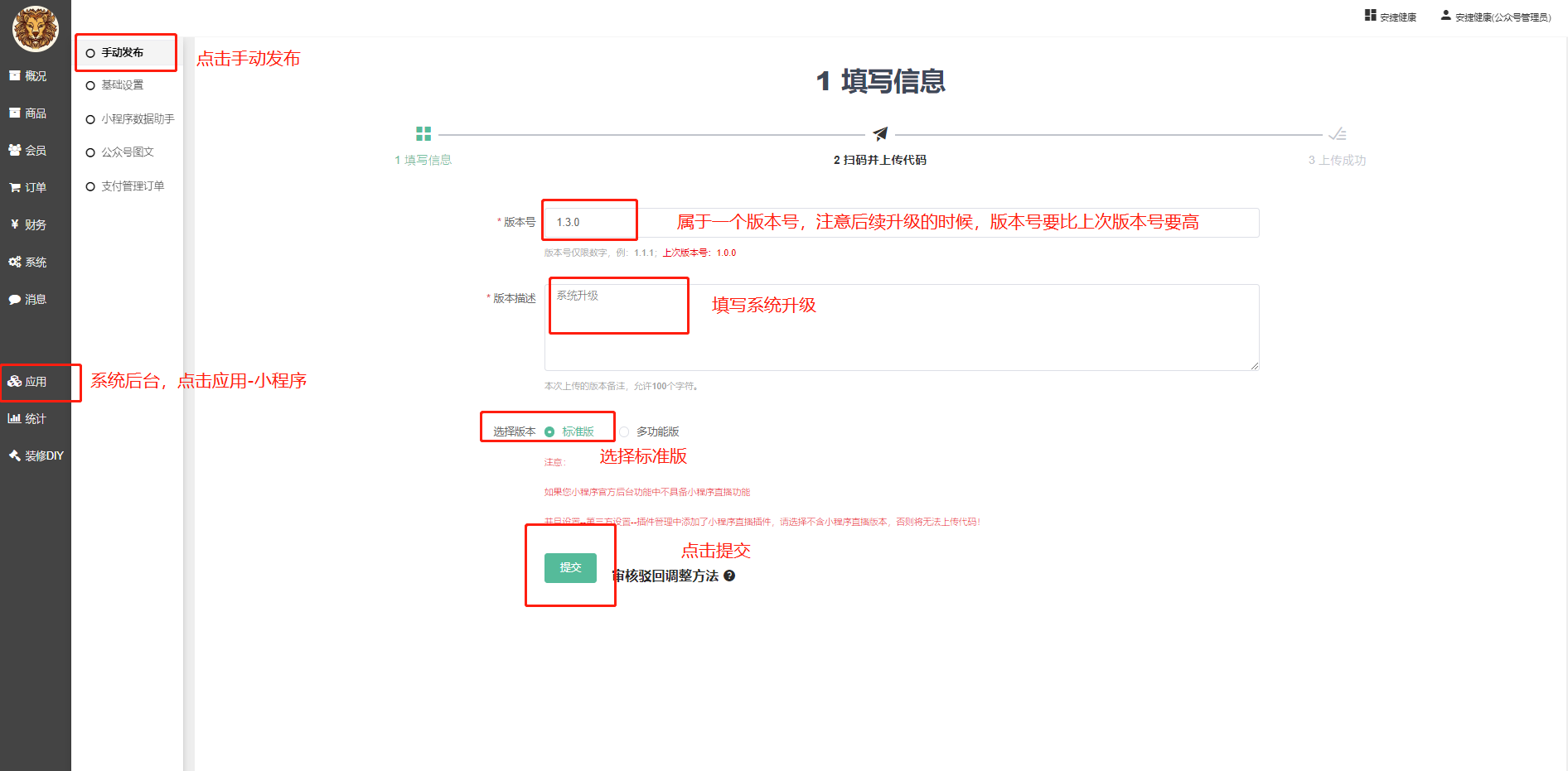 7、小程序后台-版本管理-提交刚发布的开发版本为体验版