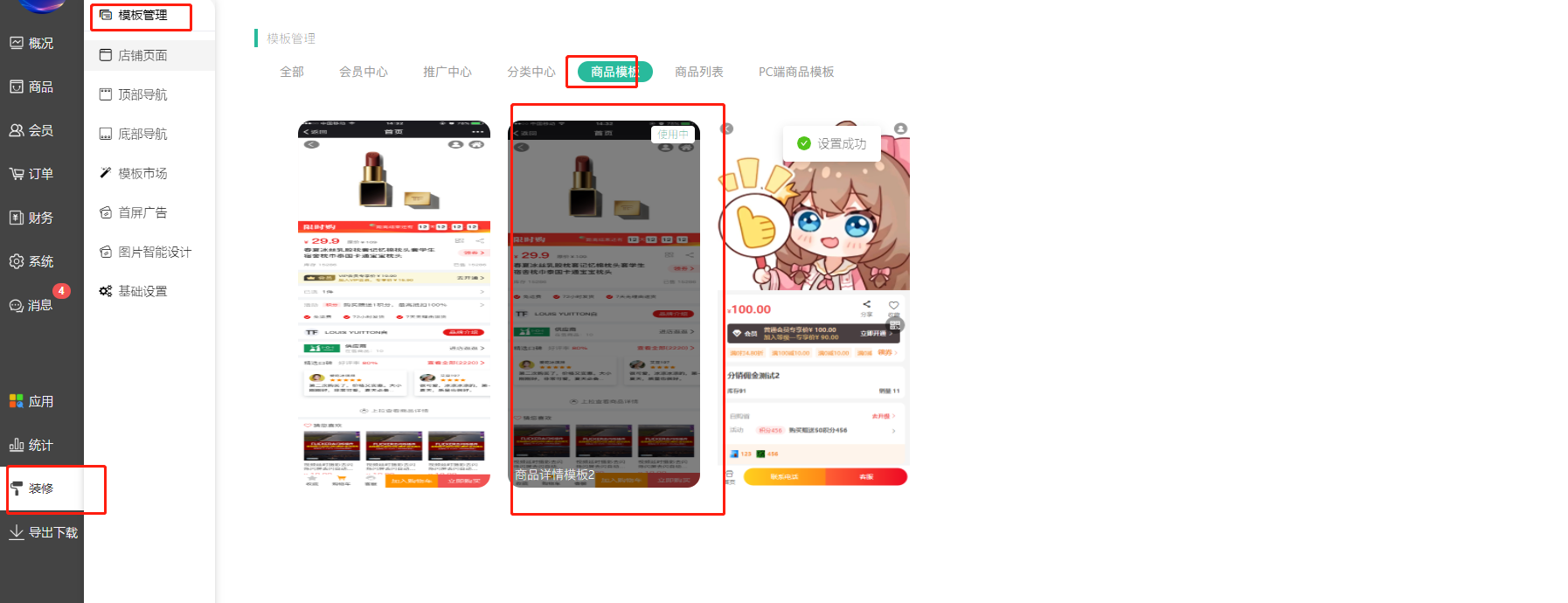 接口审核通过之后,需要回到后台,把审核页面里面的定位组件删掉,只留单图和一个商品,商品模板需要选择第二个