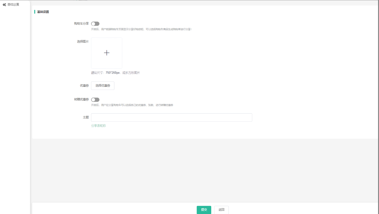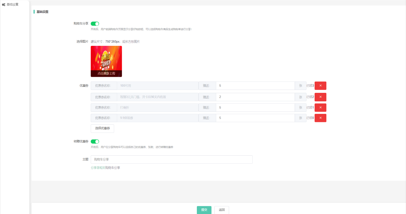 总后台--应用--营销类--购物车分享