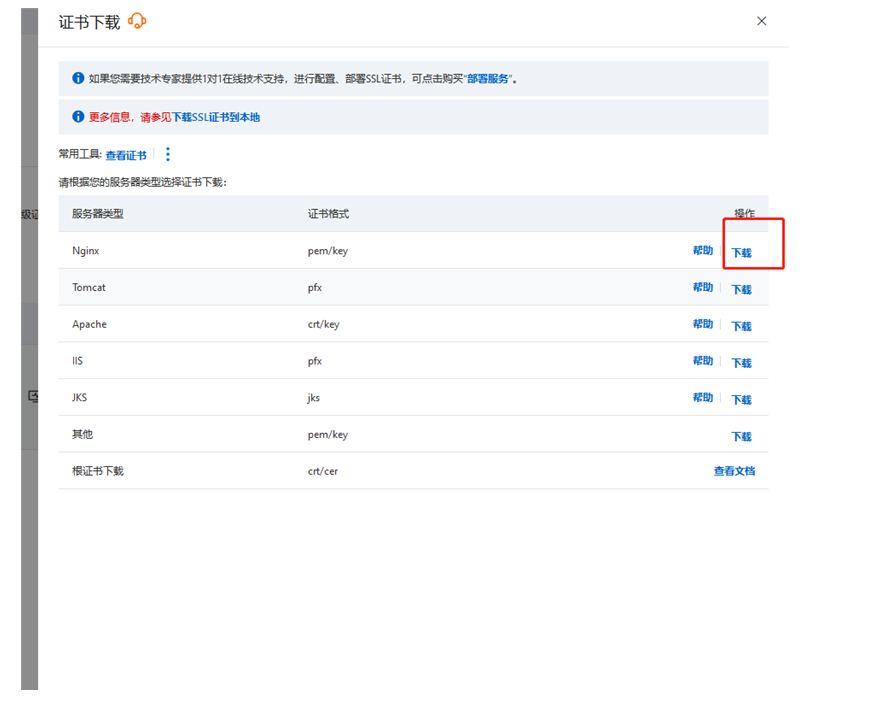配置完成之后回到阿里云,dns值就会检验正确,这个时候等待证书签发,签发成功后就可以点击下载了